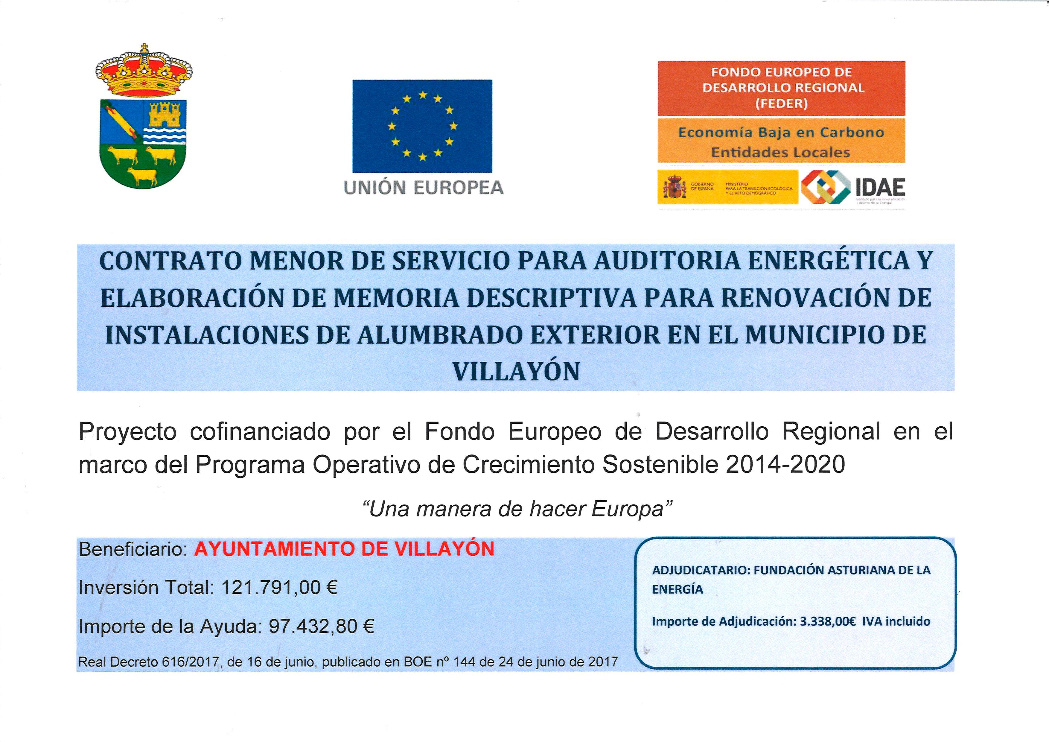 03/12/2018CONTRATO MENOR DE SERVICIO AUDITORIA ENERGÉTICA Y MEMORIA DESCRIPTIVA INSTALACIONES DE ALUMBRADO EXTERIOR EN EL CONCEJO DE VILLAYÓN
